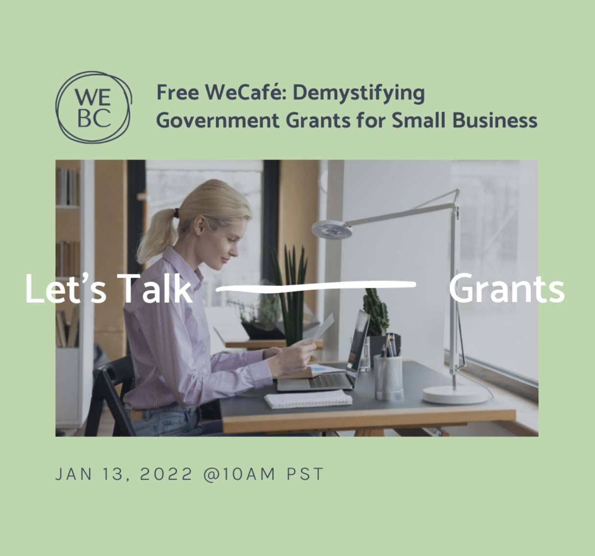 Join WeBC (formerly Women’s Enterprise Centre) on January 13th to discover what grants are available to small business owners, where to find them (and more) and how you can easily apply for them.