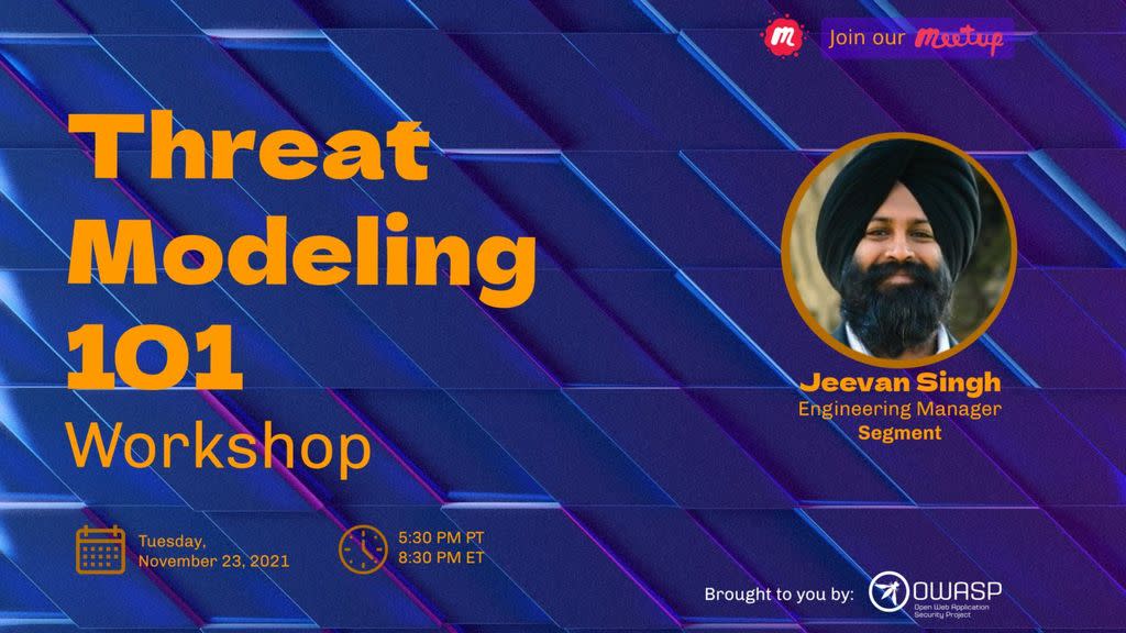 This event will feature Jeevan’s talk followed by a Q&A, workshop, and a draw for a prize (must be a registered member and reside in Canada). Join us for an evening of threat modelling!